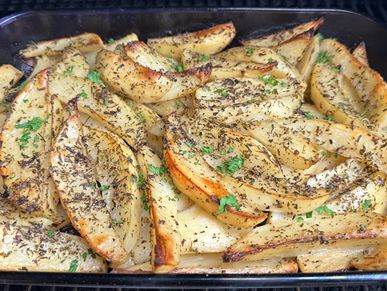 Our Greek potatoes are prepped with lemon, herbs, and are oven roasted to perfection. Patates Lemonates boasts browned crispy edges with insides so moist they'll melt in your mouth.