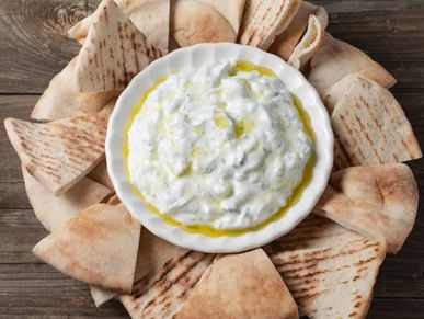 Fresh pita bread grilled with Greek olive oil, quartered, and served with our in-house signature Tzatziki sauce.